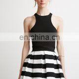 New Fashion High Waist Pleated Stripe A-line Skirt