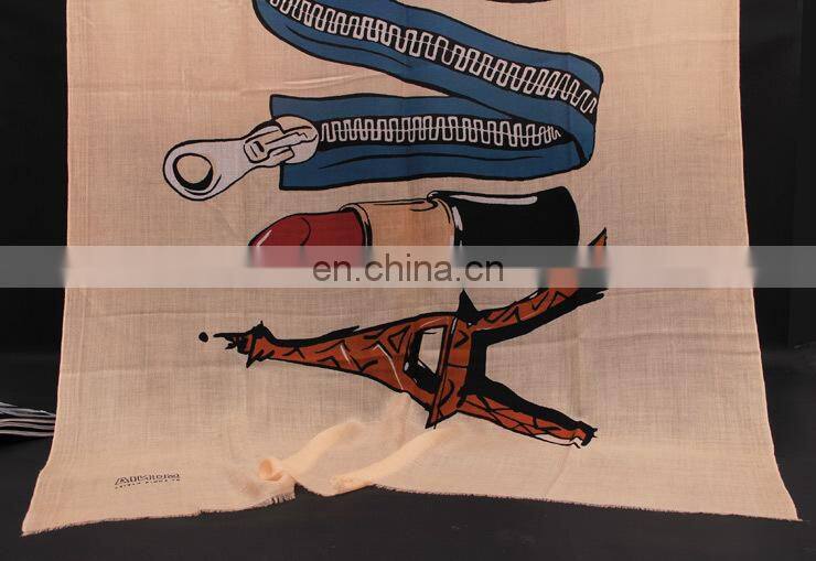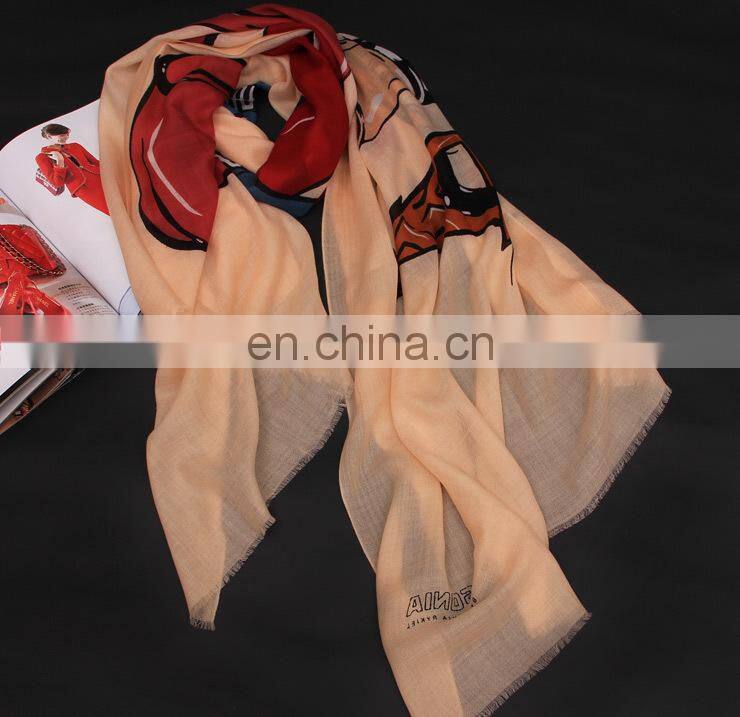 Inner Mongolia New Model Fashionable Ladies Digital Printing Scarf Plain Woven Worsted Thin Style 100s Wool Winter Warm Shawl
