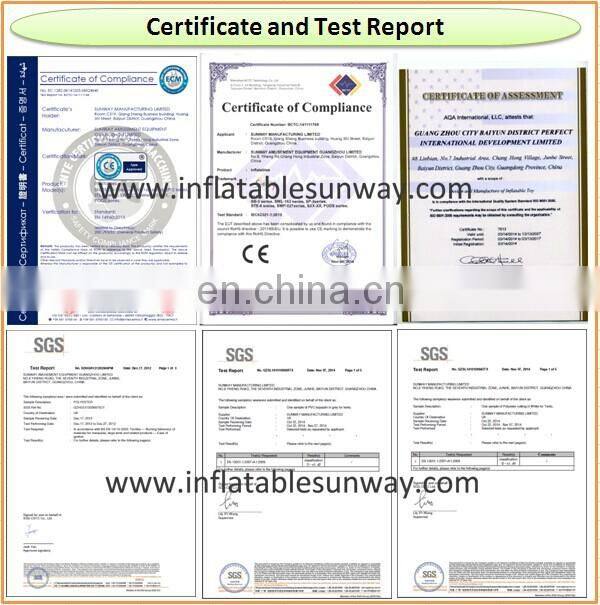 Our inflatable products have got CE approval and our factory has been approved by ISO9001:2000 and IAAPA.