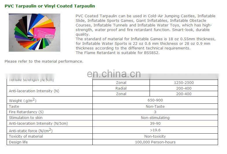 The PVC Tarpaulin is 3 layers, which is Eco-friendly,Waterproof,Yarn density 500Dx500Dx18x22, Tensile strength more than 2000N/50mm, Peel strength more than 80N/50mm, Tear strength more than 200N.