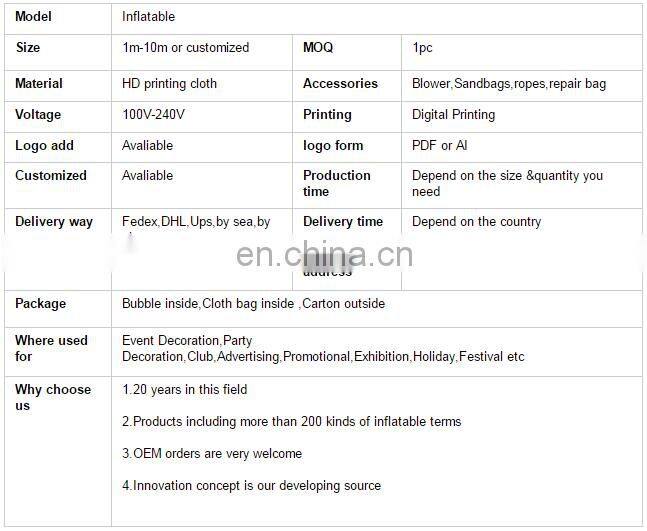 We have integrated inflatable product design, advertising inflatable product production and sale service for 22 years.