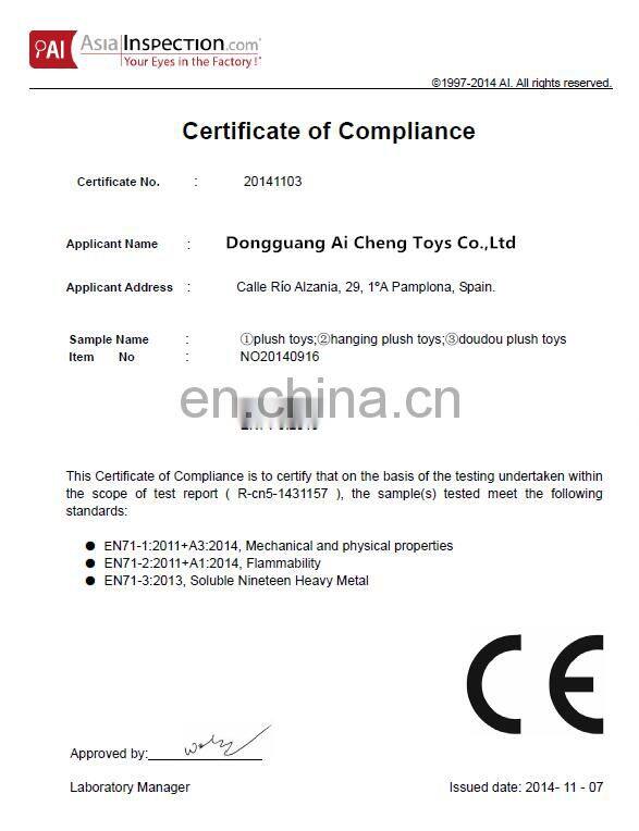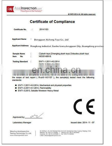 Dongguan Ai Cheng Toys Factory is a professional manufacturer of plush toys for more than 10 years.we have more than 300 workers and 5 designers . Our factory specialized in producing plush toy ,plush pillow ,plush bag ,plush shoes .All goods are exported to all over the world.
