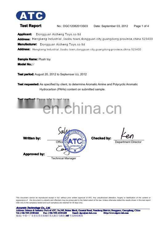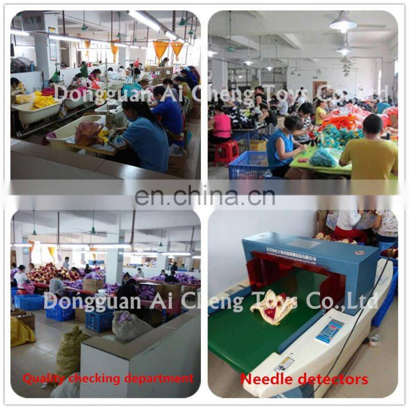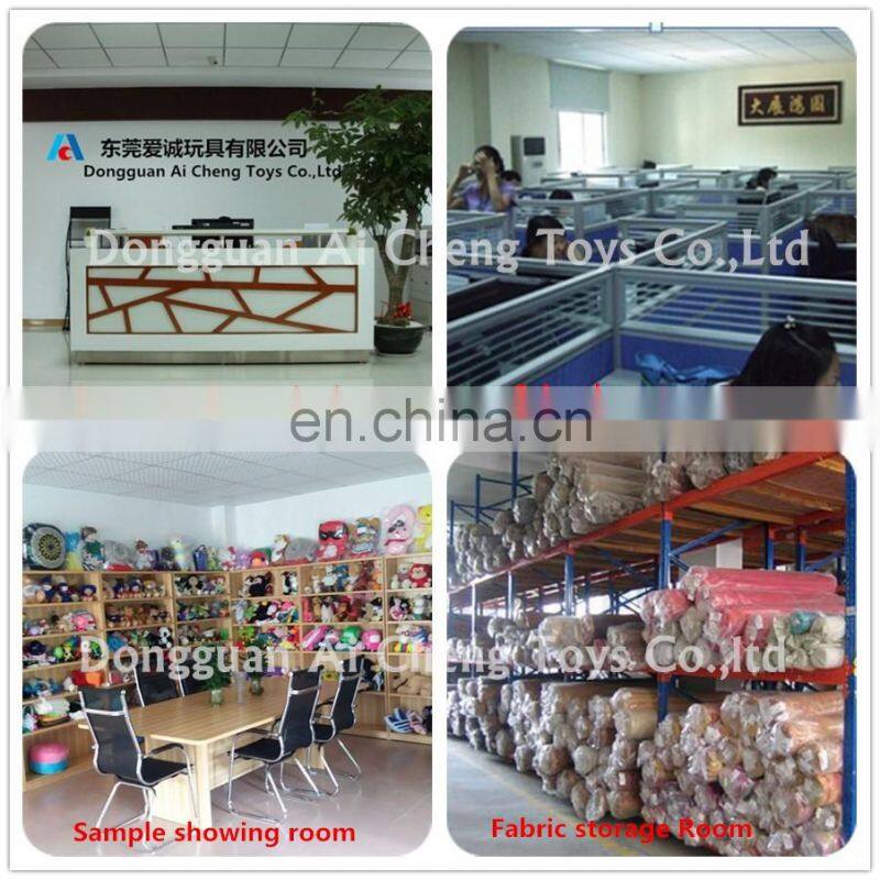 Dongguan Ai Cheng Toys Factory is a  professional manufacturer of plush toys for more than 10 years.we have more than 300 workers and 5 designers . Our factory specialized in producing plush toy ,plush pillow ,plush bag ,plush shoes .All goods are exported to all over the world.