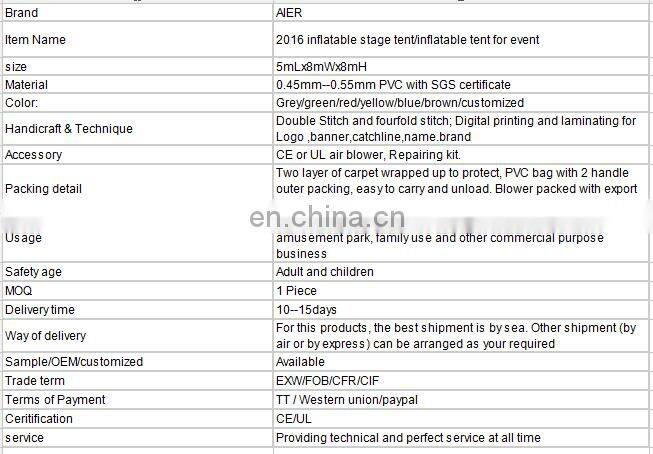2016 Guangzhou AIER Transparent Inflatable Tent Low Price Stage With Door