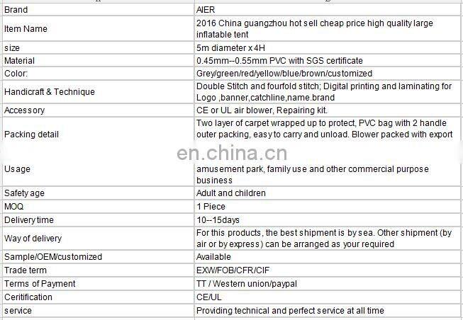 2016 China Guangzhou Hot Sell Cheap Price High Quality Large Inflatable Tent