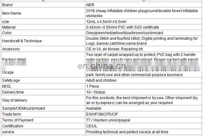 Home > Products > Inflatable Obstacles > 2016 Cheap Inflatable Children Playground/durable Forest Inflatable Obstacles