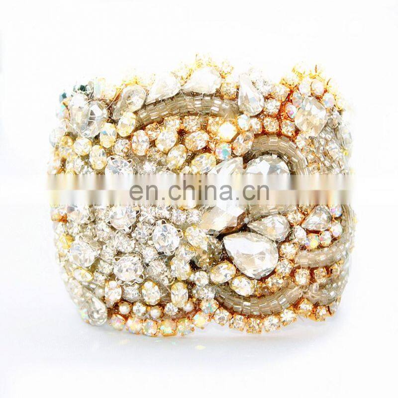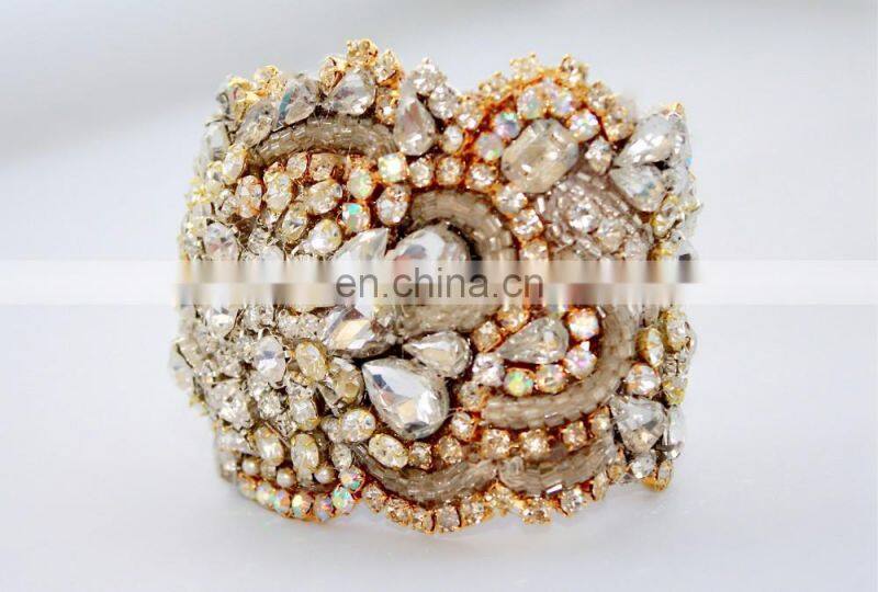 Aidocrystal Handmade New Designs Wholesale Vintage Gold Rhinestone Wedding Wide Bracelet