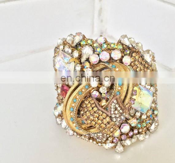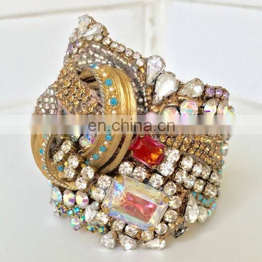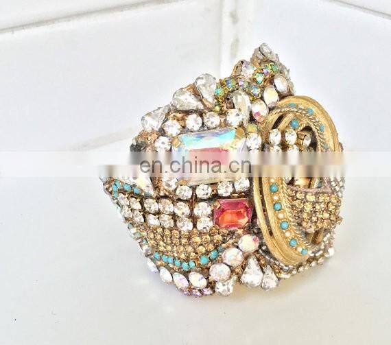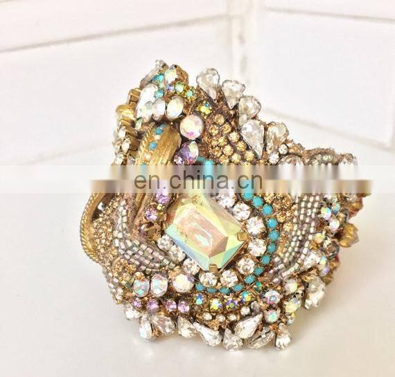 Aidocrystal Handmade New Designs Wholesale Vintage Gold Rhinestone Wedding Wide Bracelet