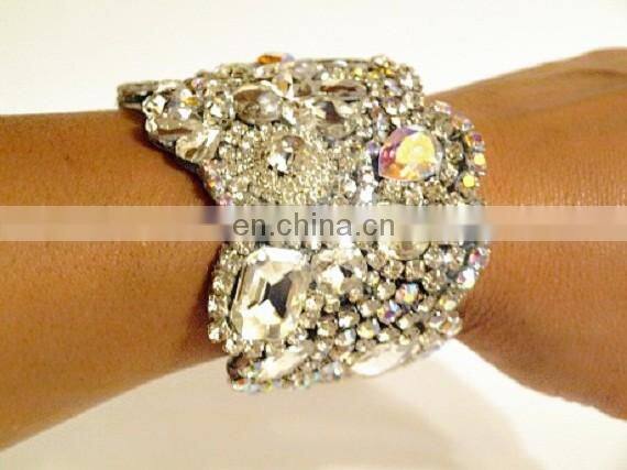 Aidocrystal handmade stunning all rhinestone old hollywood style crystal wedding cuff bracelet