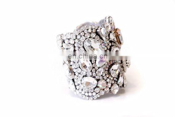 Aidocrystal Handmade Jewelry Bridal Gift White Stone Cuff Wide Rhinestone Wedding Bracelet