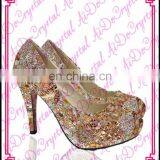 Aidocrystal 2016 Golden Ladies Crystal Bling Fabulous Clear Shining Jewel High Heels Peep Toe Wedding Shoes