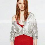 OEM Women Clothing Winter New Fashion Zipper Silver Casual Jacket Coat for Young Ladies