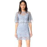 OEM New Design Light Blue Reach Out Lace Women Dresses Transparent Yoke Sexy Evening Dress
