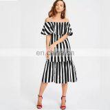 Casual Going Out Long Maxi Women Dress Off The Shoulder Striped Flounce Dress