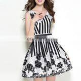Women Casual Dress v Neck Black and White Stripe Floral Dress