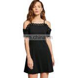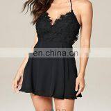 OEM Black Lace Panel Cami Dress Spaghetti Strap Patchwork A Line Mini Cocktail Dress