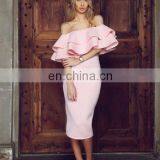 Women Double Layer Frill Dress Tight Midi Dress With Boat Neckline Design Women Evening Party Dress