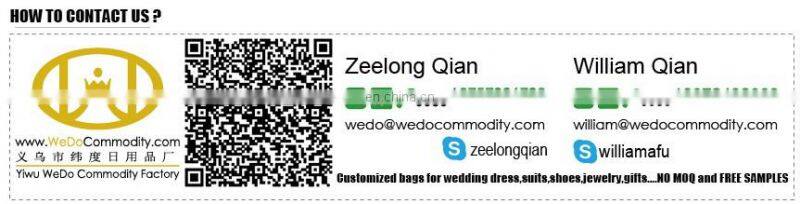Garment bags for mens suit,wedding dress,coat,shirts,etc,which can be made of non oven,PVC,plastic,nylon,polyster,etc.This foldable travel garment bag keeps the garments from dust,damp,smelling and so on.Customized size,color,LOGO and material are available.