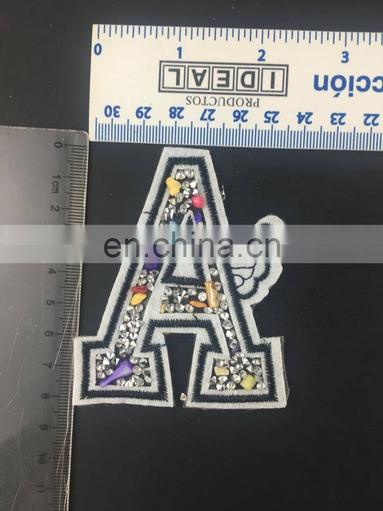 Top Fashion Sew on 3D Sequin Beads Logo Letter Patches