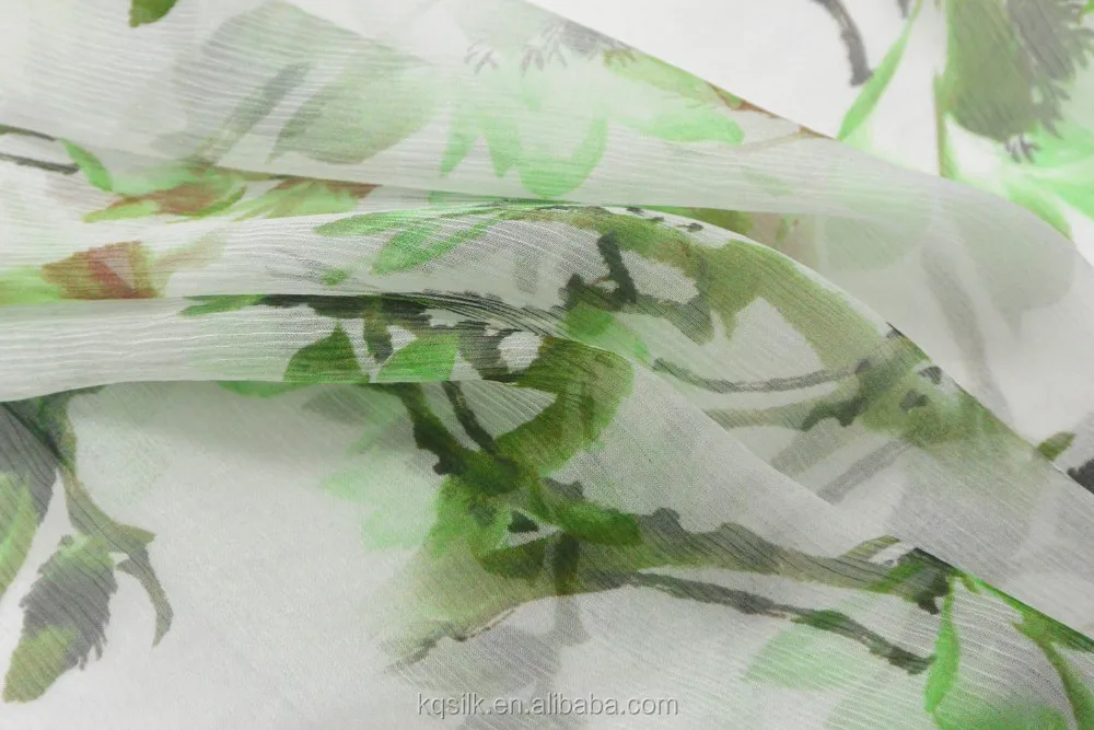 Hot Selling French Silk Fabric Green Floral Fabric Crinkle Silk Georgette Fabric for Dress | Scarf