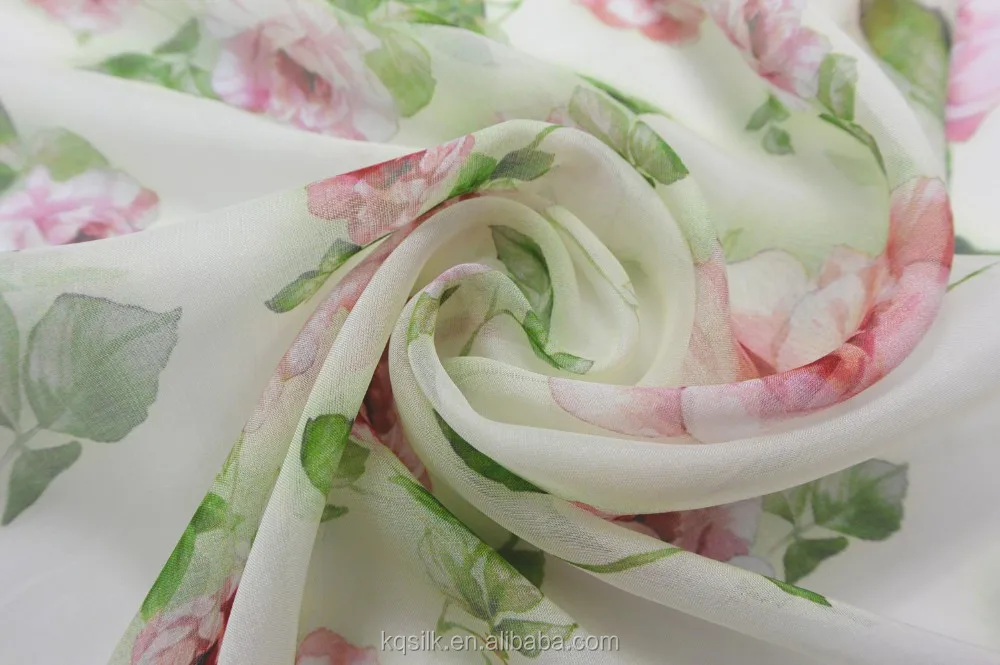 Fashion Chiffon Fabrics Chinese Silk Fabric Printing With Camellias Pattern Silk Chiffon Fabric for Lady Dress