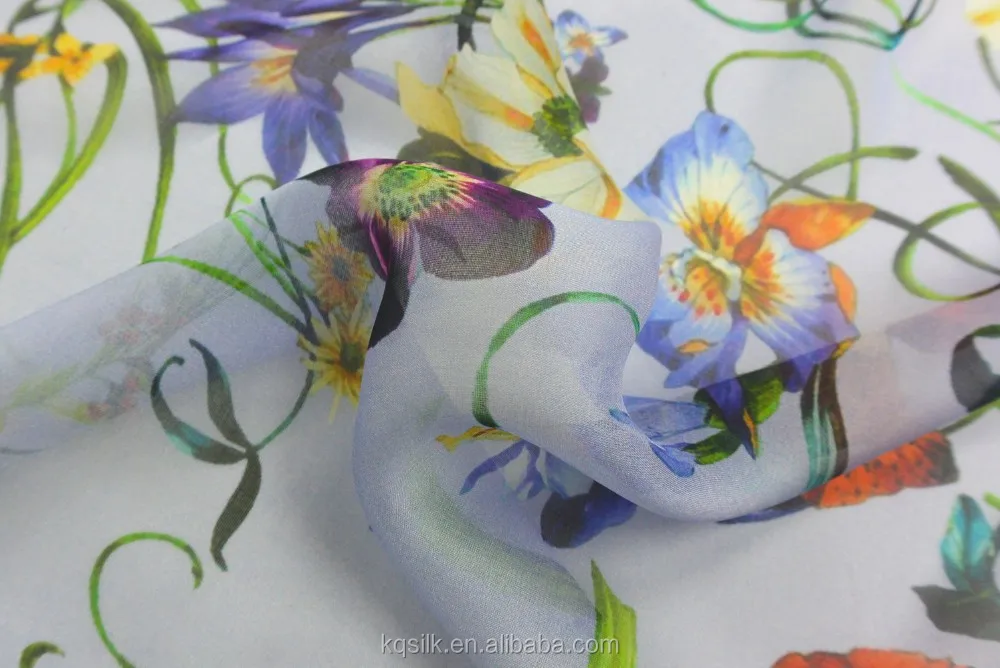 2017 Fashion Fabrics Chiffon for Lady Dress Silk Printing With Floral Pattern Silk Chiffon