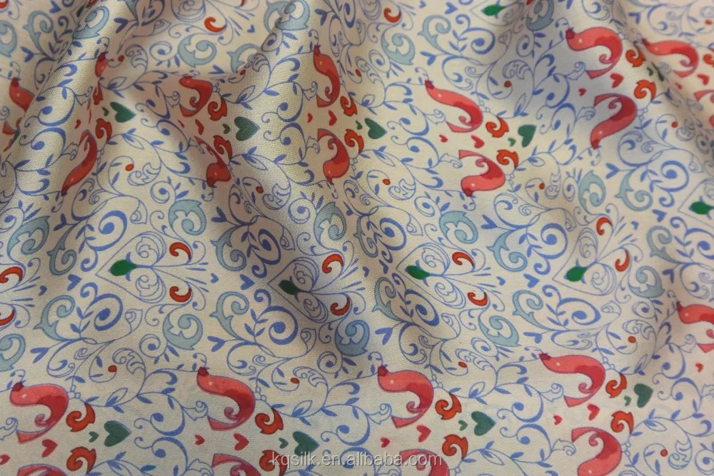 We can print them on fabrics you want: silk satin, silk chiffon, silk CDC...silk blend fabric, rayon or other fabrics.