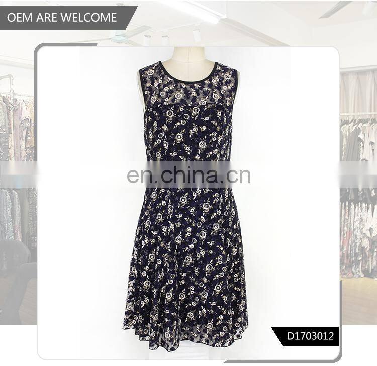 Guangzhou Sleeveless Lace Print Flower Ladies Casual Dresses