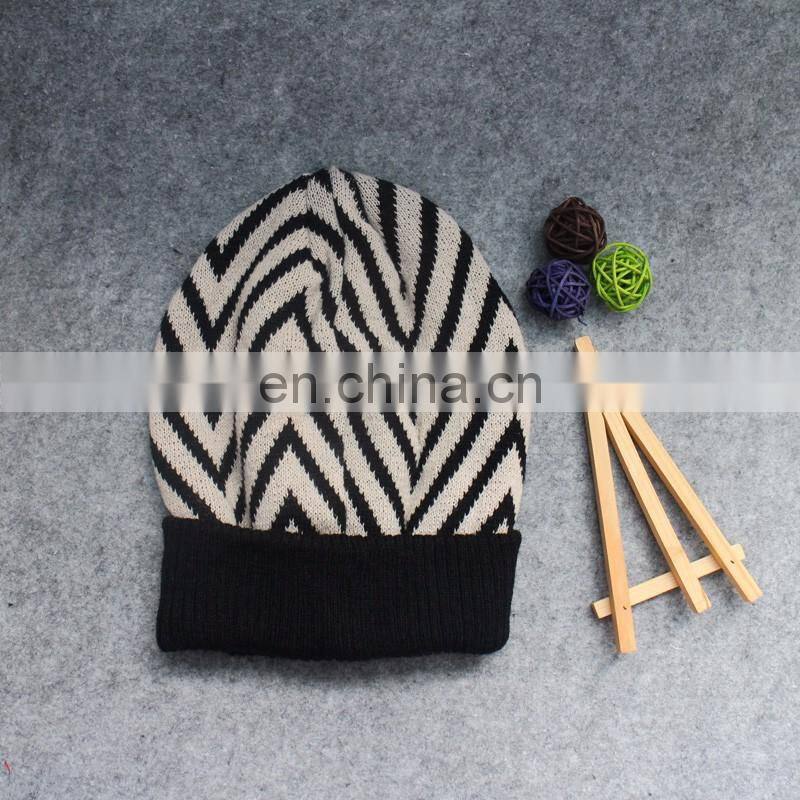 Home > Products > Fashion Accessories > 100% Acrylic Custom Make Black and White Strips Beanie Hat