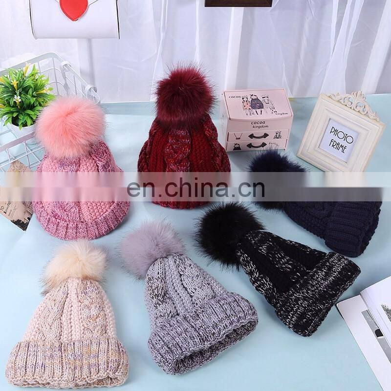 Home > Products > Fashion Accessories > Women Winter Fashion Cable Knit Beanie Fur Hat On Sale