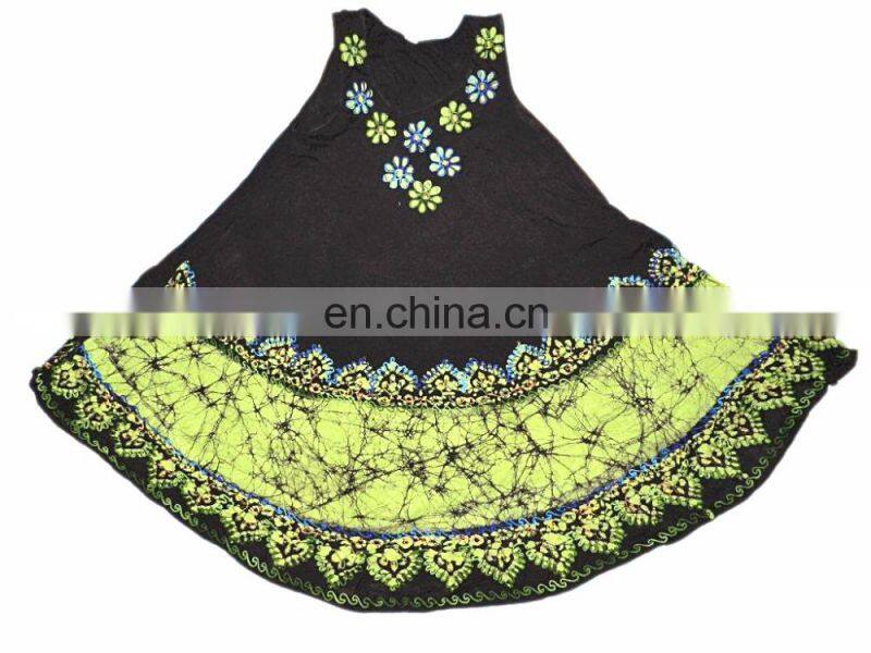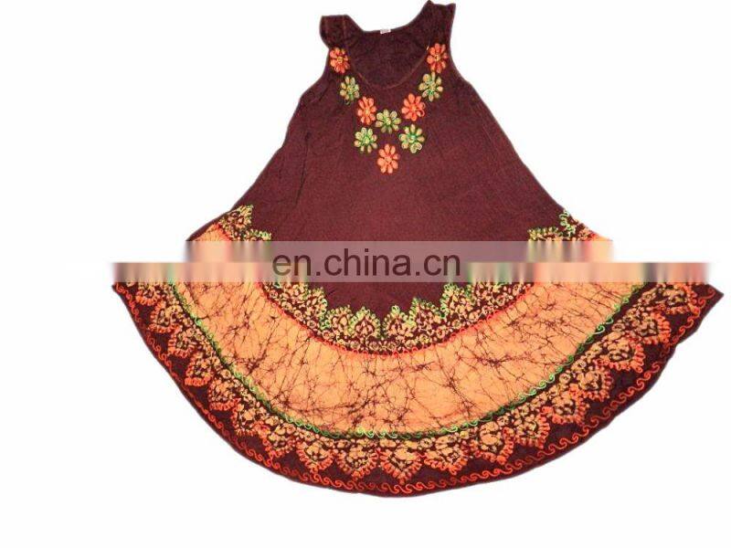 Its a handmade batick tie dye printing dress and skirts for women and girls..It has very soft cotton voile fabrics which give good feeling at the time of wearing. You can wear for outing and enjoyment. It has proper stitching which can be used for body...