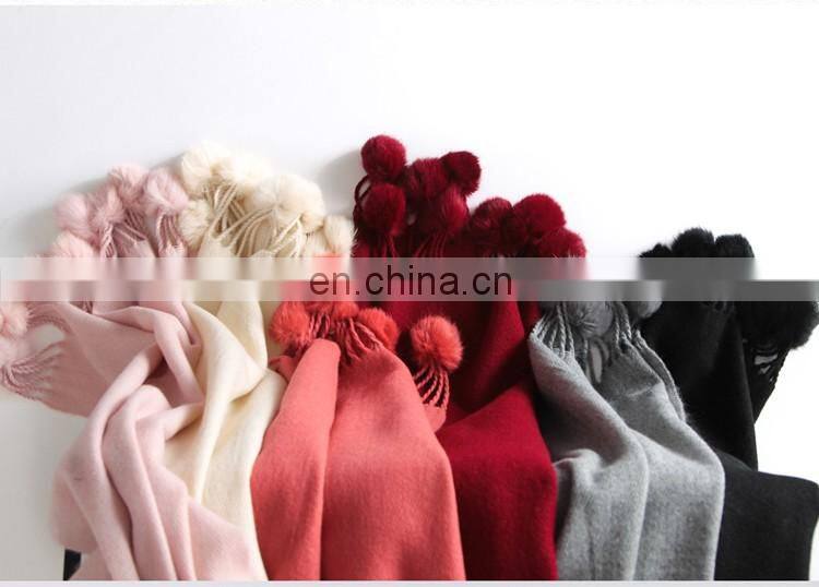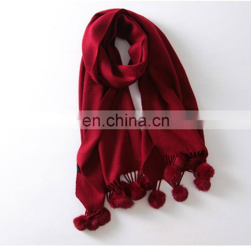 Home > Products > B, Shawls Scarf > 2016 Wholesale New Design Winter Plain Rabbit Fur Ball Wool Spinning Scarf