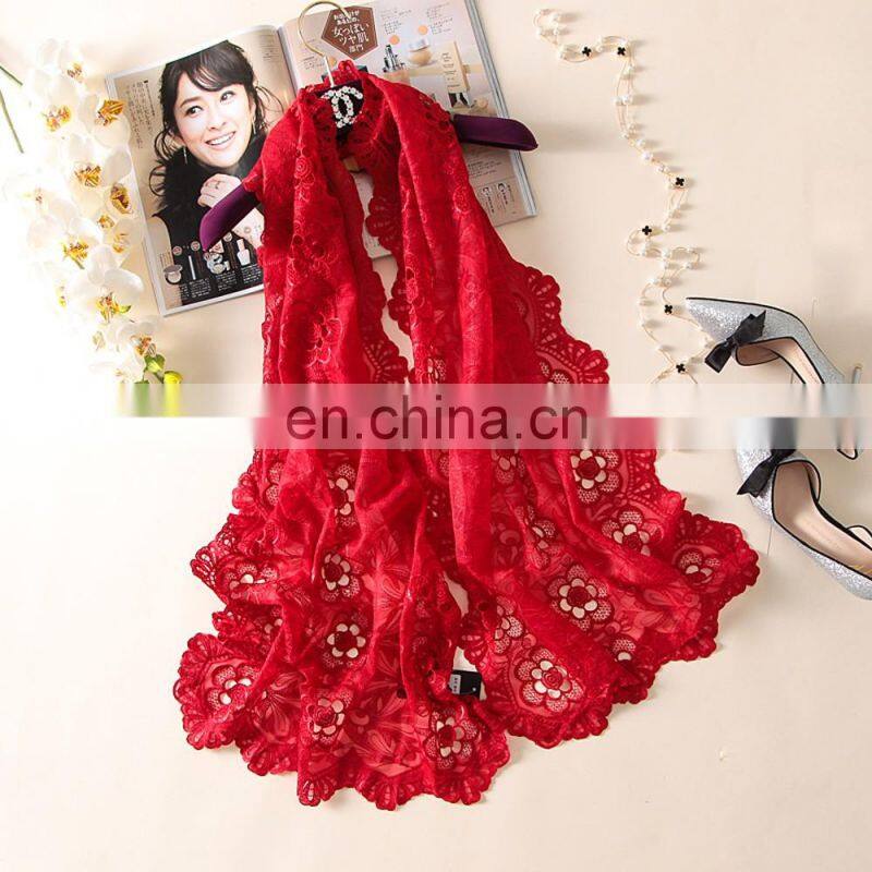 New Foulard Women Spiral Pashmina Embroidered Lace Scarf Long Soft Polyester Wrap Shawl Bufandas W4028