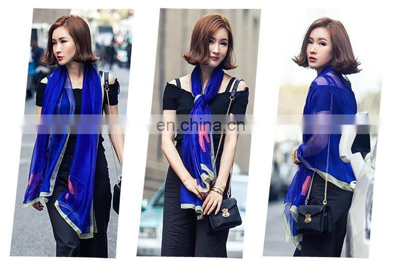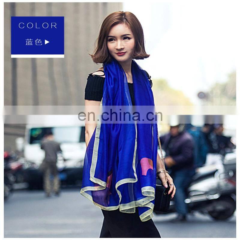 2017 New Design Hot Drilling Plant Embroidery Silk Shawl Scarf