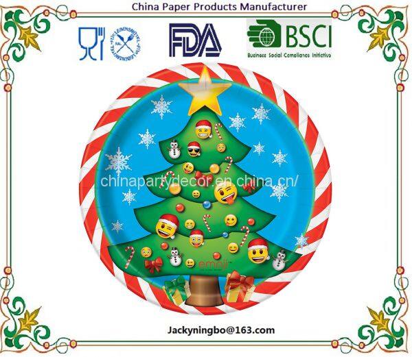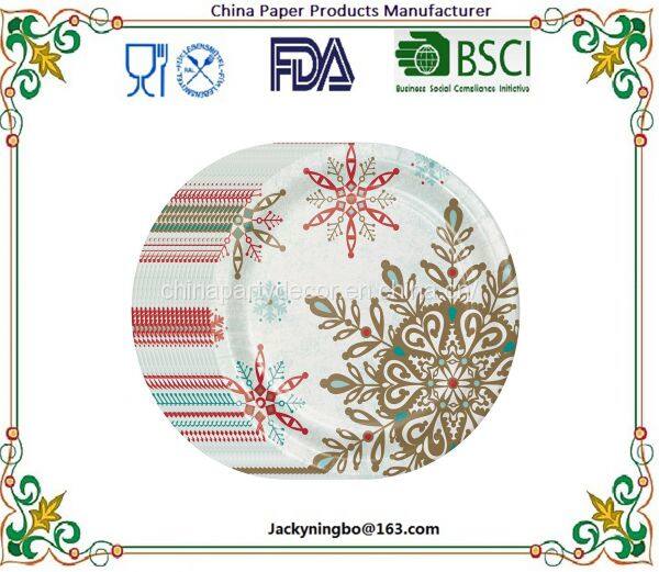 Ningbo PartyKing Christmas Party Holiday Disposable Dinnerware Tableware Color Printed Paper Plate With PE Coated Pack Made in China