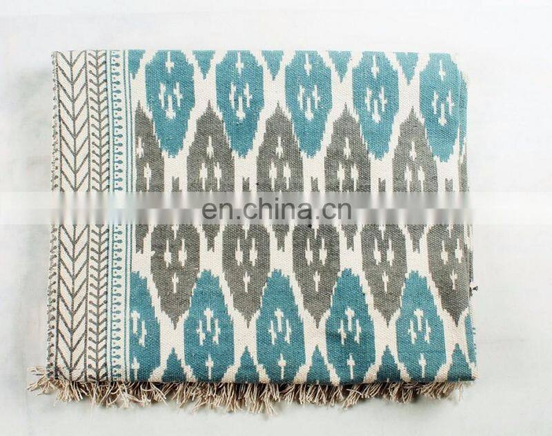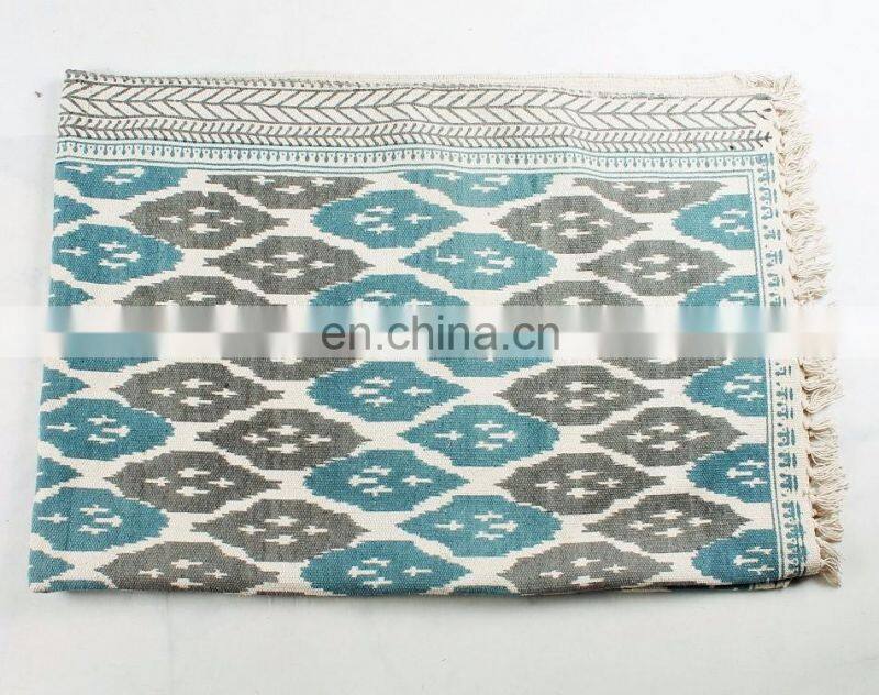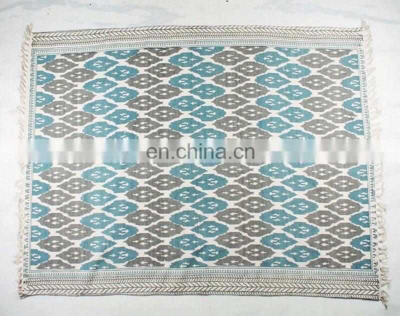 Indian Handmade Cotton Carpets Rugs Hand Block Print Indian Traditional Art Dhurrie Rag Rug