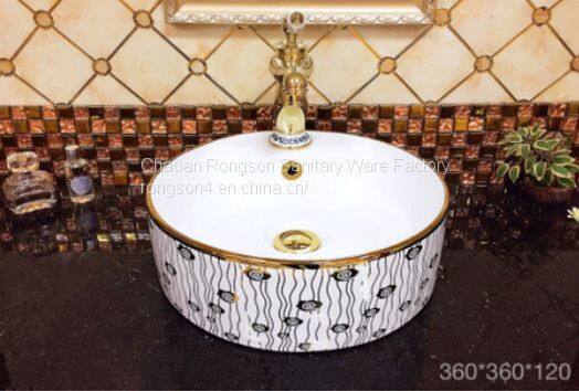 Golden color ceramic round shape tabletop bathroom new design color single hole hotel wash hand basin