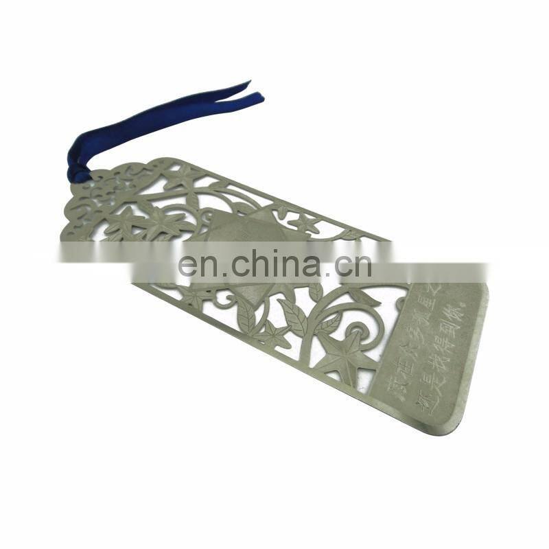 ITEM NAME:custom zinc alloy silver hollow design electronic dictionary bookmark with ribbon