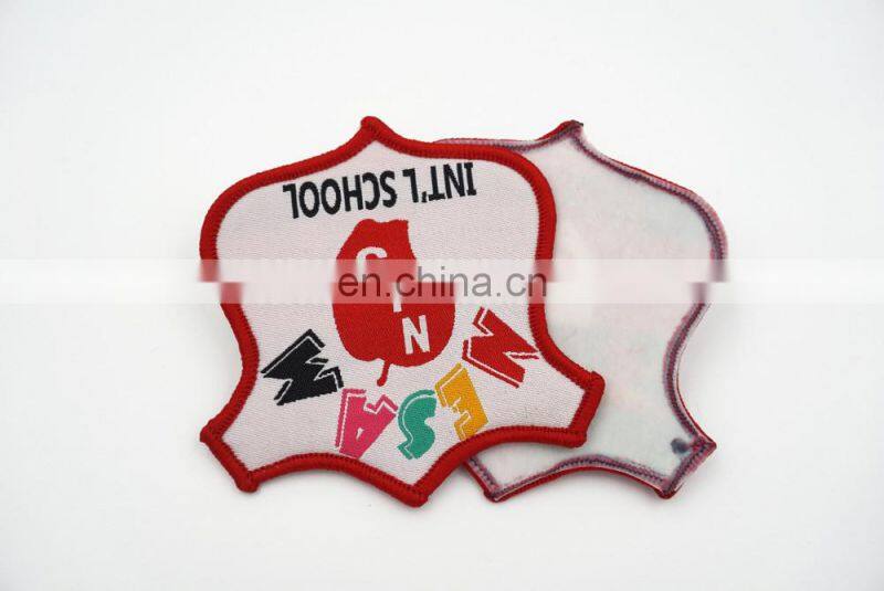 Die-cut Shape Beatiful White Background School Woven Badge Customized Cheap Woven Badge for Uniform