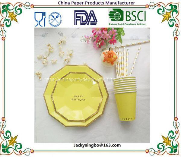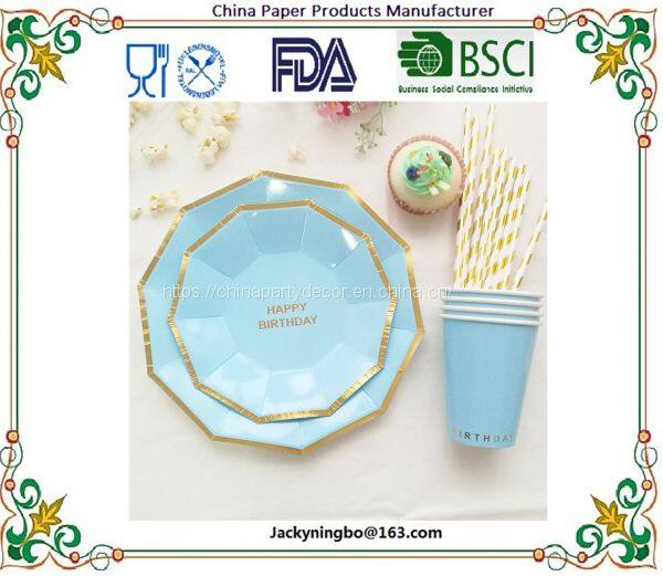 Ningbo PartyKing Holiday Colorful Printed Gold Foil Paper Plates Cups and Napkins Party Tableware Pack - Service for 12