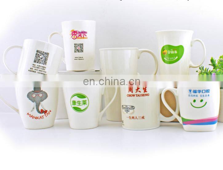 A grade level with high quality porcelain mug, weight is about 300g, logo is stable and strong , food safe testing .