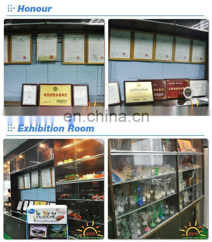 Our main production lines include Light up Sunglasses, Blinking Pins, Flashing Foam Sticks, (Remote control) Light up wands, LED floating swimming noodles, Flashing water guns, Light up cups, Light up bracelets (normal/ sound activated/motion sensor/remote control), Flashing Braids, Blinking earrings, Light up folding fans, Light up message fans, and many other flashing items(see catalogue for details). Also OEM & ODM are fairly welcome.