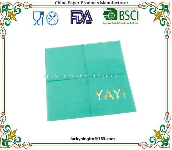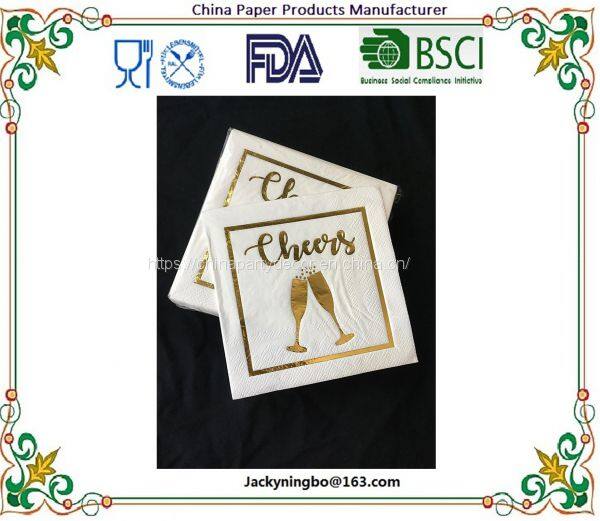 Ningbo PartyKing 20ct 3Plys 20ct 3Plys 10inch Foil Gold Beverage Napkin Oh Happy Day Tissue Cocktail Paper Napkins Serviettes For Party