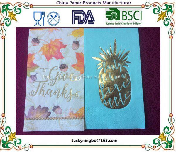 Home > Products > Paper Napkins > Amazon Ebay Popular 16ct Foil Gold Paper Beverage Napkins Disposable Party Tableware Ningbo PartyKing