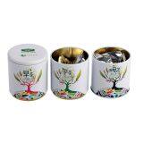 Three Cans With Black Green Pu er Teas With Different Flowers