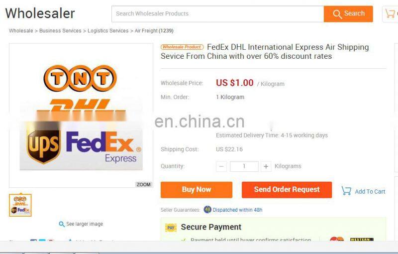 We have 70% discount for the freight of DHL, Fedex and UPS door to door air shipping counter. Transfer time is 3 days for priority shipping and we have lower cost economy shipping too. We will quoting you the price. We have also post the freight rate and price list  on our office website for your fast and convernient checking.http://wholesaler.china.cn/product-detail/FedEx-DHL-International-Express-Air-Shipping_60330186208.html