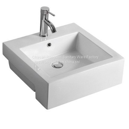 Ceramic Semi Bathroom Square Single Hole White Color Hung Basin Sink With Single Hole