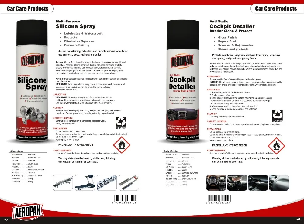Home > Products > car care > AEROPAK 500ml Anti Static Cockpit Detailer Car Detailing Dashboard & Leather Cleaner For Car Washing and Cleaning