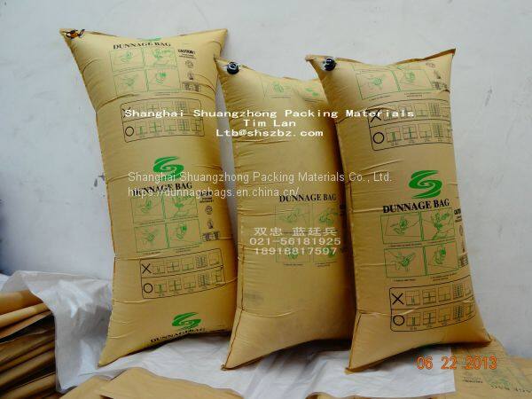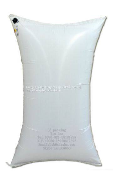 Inflatable dunnage air bag consists of plastic(PA) bladder that holds compressed air, and an outer shell made of kraft paper or polypropylene woven material.It be used in truck/railway carriage/container as a filler,easy to use with quick inflation.