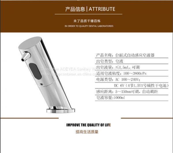 Zhongshan ACEYEA Sanitary Ware Co., Ltd. is a professional manufacturer of intelligent bathroom appliances, the company introduced the United States and Germany technology. With the United States, Germany, the United Kingdom, Canada, Hong Kong, Taiwan and other customers to supply and develop a new tap-type sensor soap. The products are newly designed by American designers, and their products are sold at home and abroad. The company's products are the cooperative suppliers of many well-known brand enterprises. The products are currently used by Baidu, Ocean Real Estate, Times Real Estate, Henglong Real Estate, Erie, Mengniu, Hilton Hotel, Vienna Hotel, Daoxiang Hotel, Guangzhou Zhou Dafu Financial Center, Shanghai American College and other world-renowned enterprises. Products are widely used in office buildings, shopping malls, plazas, hospitals, stations, airports, hotels and other commercial places.This product adopts infrared automatic induction technology, and can automatically induce soap liquid. Every time the soap dispenser is quantified, the waste of hand washing liquid can be avoided. The product is installed by faucet type, which can ensure that the excess hand washing liquid falls into the basin to avoid the common soap droplets dirty on the table surface and corrosion of the table surface. Our products are all made of brass chrome plating. The products are made of advanced multi-layer plating technology, which can ensure the durable brightness of the products. The product uses the Sino US technology development soap liquid pump, the service life is long, the sound is low, the power consumption is small and so on. At present, our products are widely used in many high-grade commercial public health places at home and abroad. Our products are also exported to the United States, Canada, Turkey, India, Malaysia, Singapore, Hong Kong, Taiwan and other places. We have the cooperation of agents and distributors in the United States, Turkey, India and other markets, so that good quality can be established for a long time. Cooperative relationship, we welcome the domestic distribution partners, business partners to establish long-term business relations with us. We will provide perfect pre-sale and after-sales service. You are welcome to contact us anytime!We promise that we will provide 2 years free warranty for products purchased in our store. The damaged product is free of repair within 2 years, free of charge and replacement of related parts. The customers in Guangdong provide mail delivery and spare parts maintenance. The main part of the product offers 5 years of quality assurance. Non-human damage for 5 years free replacement! We welcome all major businesses to buy and sell our products.